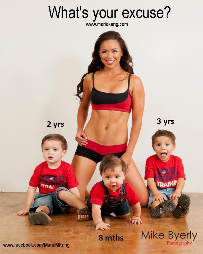 Anyway, getting back to the woman with the flat stomach. Yes, THE woman. She really got a lot of women fired up awhile ago over a picture of her in her tank top and bootie shorts and the words “What’s your excuse?” at the top of the picture and her three little boys next to her. Oh MAN, did women have a shit storm over her. It was unreal. And it went on and on and on. Like forever. I loved it. All I have to say about Maria is GOOD.FOR.HER. 😉